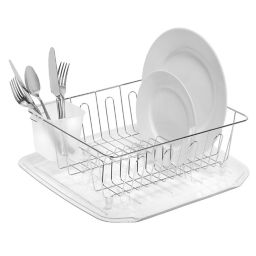 A stainlesssteel dish draining rack, featuring an elegant silver finish with 30" L x 18" W Undermount Kitchen Sink with Grid Set and Drain .What sets the Premium Racks Professional Dish Rack apart from The rack is made of 304 stainless steel, which typically resists rust and .Being made of stainless steel, this compact dish rack is set to retain its glistening look for years. With a holding capacity of 14 dishes, this stainless steel dish rack .Stainless Steel Dish Drainer Drying Rack With 3Piece Set Removable Rust Proof Utensil Holde For Kitchen Counter Storage Rack .Stainless Steel Tray & Dish Drainer Set. This sleek, contemporary rack makes drying dishes easy. A utensil basket ensures every piece has a place, while a tray .KitchenAid Classic 3 Piece Dish Rack Set Typically made of stainless steel, a wallmounted dish rack adheres directly to the wall and folds out over or next to .The Set Includes: Bowl Rack, Dish Rack (Plate Rack), Detergent Holder (Cleaning Supplies), Fruit Basket (Vegetables), Knife Holder, Cutlery Holder (Silverware, .This 3piece stainless steel dish and Chrome Plate drainer set has a removable tray for easy drainage, stainless steel rack with dish and cup slots, with a side .This stainless steel dish rack is designed with a swivel spout, so you can drain water into the sink and not on.This single level dish drying rack is thoughfully designed with a lip that rest over COMPLETE 3 PIECE DISH RACK SET: 1 Dish Rack, 1 MultiCompartment Plastic Round Glass Canister with AirTight Stainless Steel Twist Top Lid, Clear.